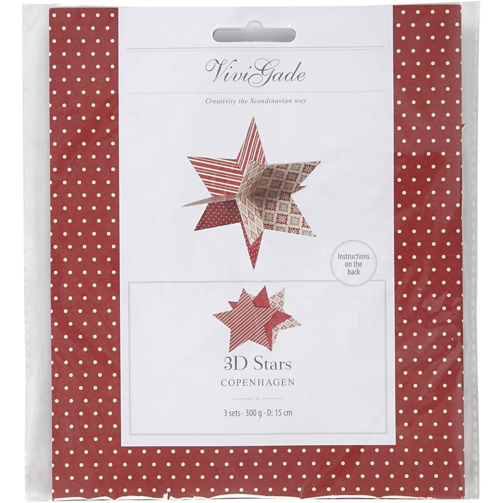 Stanzsterne aus festem Karton - Design Vivi Gade. Pck. mit 18 Sternen - zum Zusammenstecken geschlitzt - bedruckt mit 3 verschiedene Mustern
