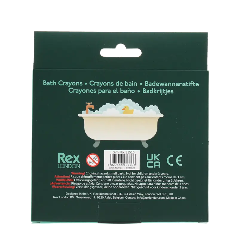 Dieses Set mit acht farbenfrohen, abwaschbaren Malstiften ist perfekt für die Kleinen, um ihrer Kreativität beim Baden freien Lauf zu lassen. Sie werden viel Spaß beim Malen und Kritzeln in der Badewanne oder auf den Wandfliesen haben. Nach dem Malen lassen sich die Kunstwerke einfach abwischen, ohne dass eine Spur zurückbleibt!