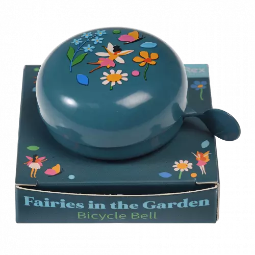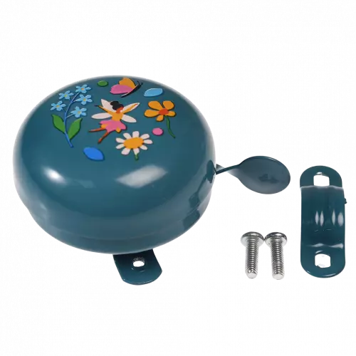 Eine klassische Fahrradklingel in blau, bedruckt mit unserem fairies- Design.