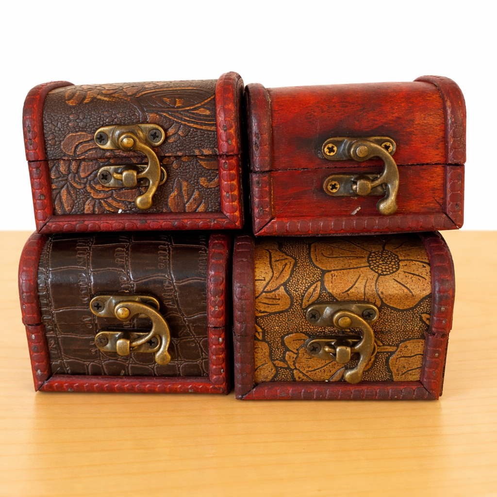 Grösse Truhe: ca. 80 x 60 x 60 mm (Holz/Leder-Imitation in 4 verschiedenen Varianten - zufällige Sortierung)