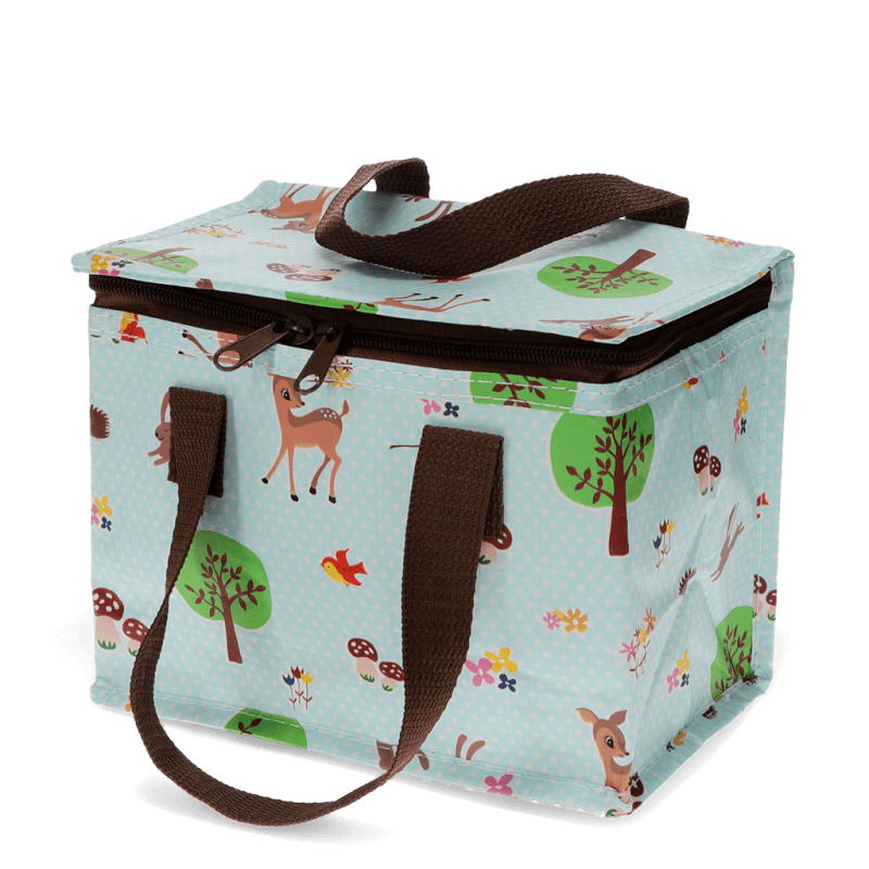 Eine isolierte Snacktasche mit verschiedenen Motiven aus unserem klassischen Woodland Creatures - Design.