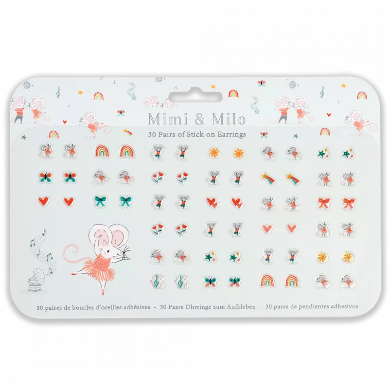 Set mit 30 Paar Ohrringen zum Aufkleben für Kinder.