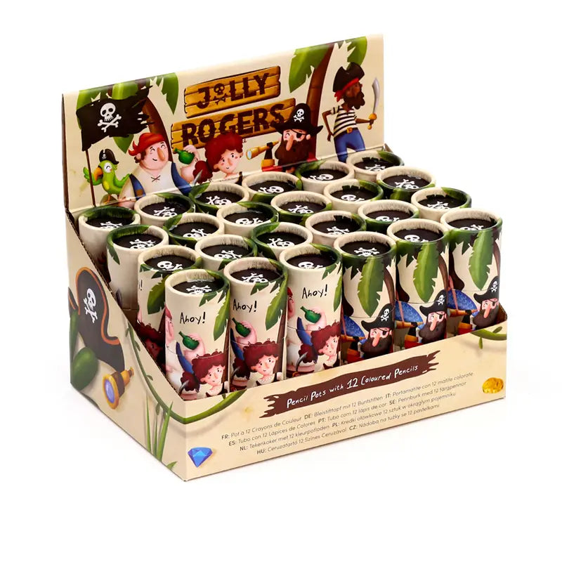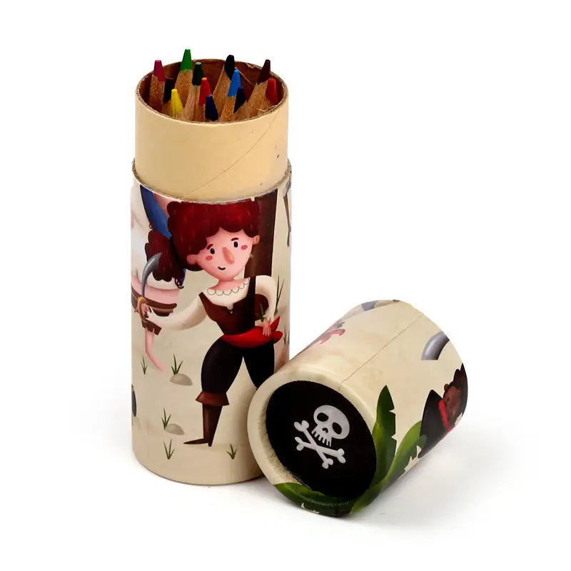 Bleistiftbehälter mit 12 Buntstiften. Material: Holz | Maße der Karte: Höhe 10,5 cm, Breite 3,5 cm, Tiefe 3,5 cm, Bleistift 8,5 cm