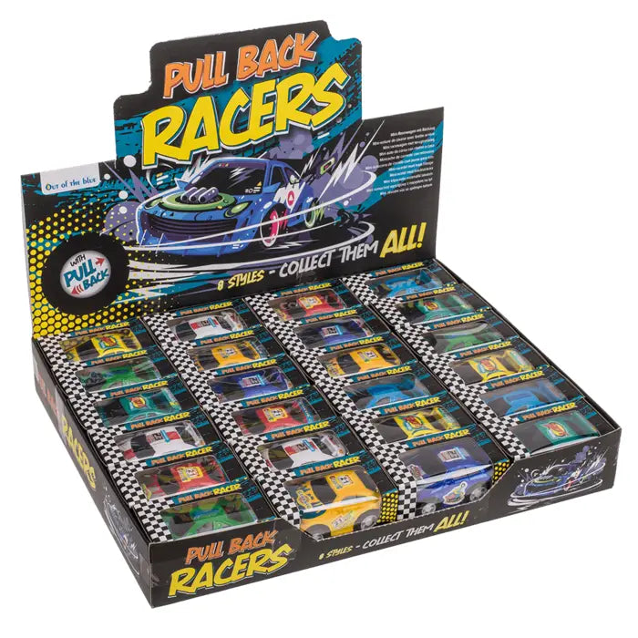 Rennwagen mit Rückzug, ca. 5,5 x 4 cm, 4 Fahrzeugdesigns Hintern & 2 Farben, in Geschenkverpackung