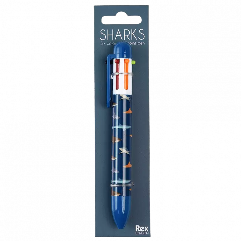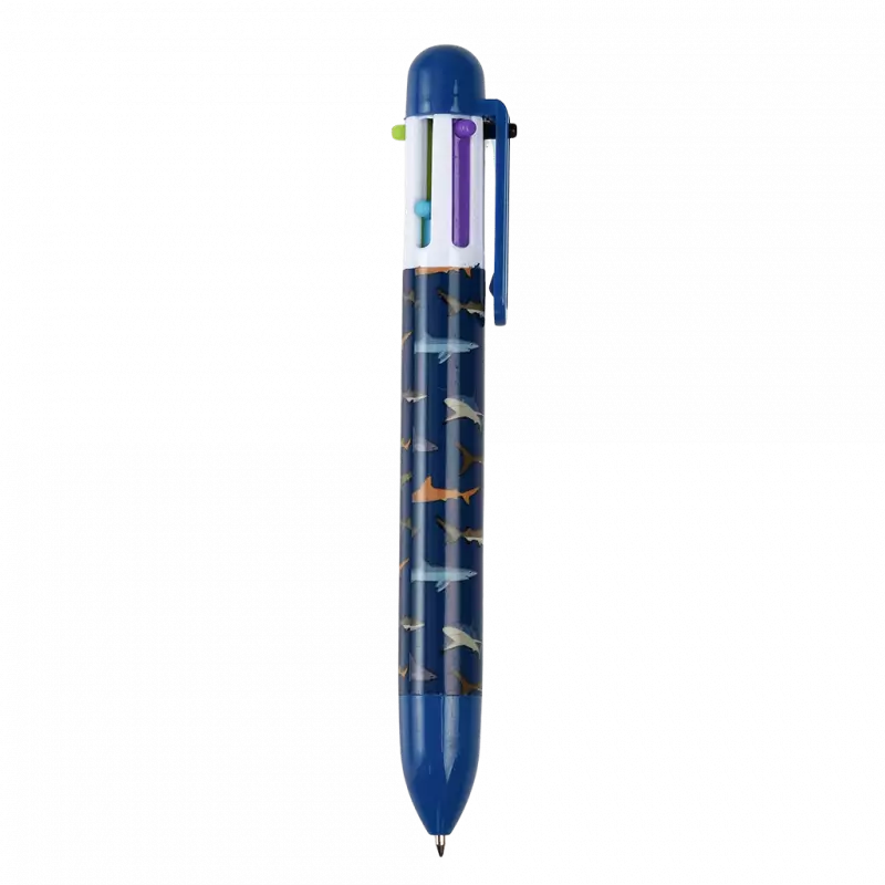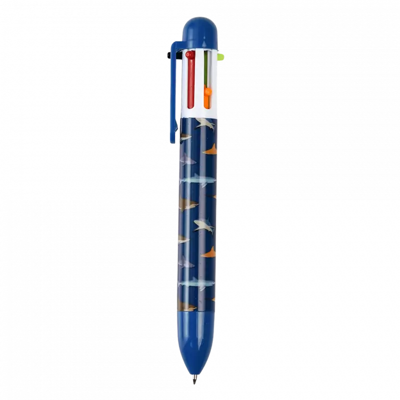 Ein Kugelschreiber mit 6 verschiedenfarbigen Minen, dekoriert mit unserem Shark - Design.